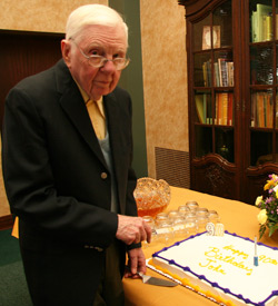 Hart in 2007 as he cuts the cake during his 90th birthday celebration at the College.