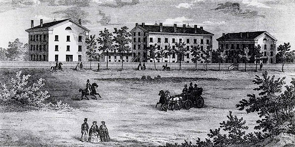 From the time the cornerstone was laid for the first permanent building in 1840 until today, Albion College has remained on the same site, the original part of which is now affectionately called “the Quad.” In 1861, there were only two classroom buildings. But by 1901, Albion had added a chapel, an observatory, a gymnasium, a chemistry building, and a library.