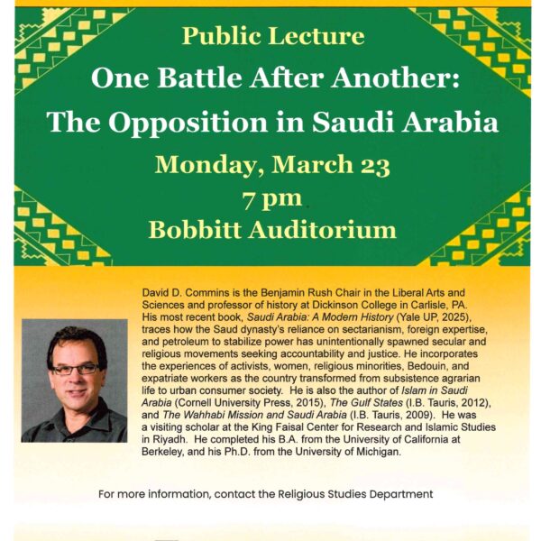 Daoud Family Lectureship in Middle Eastern Studies, March 23, 7pm, Bobbitt Auditorium