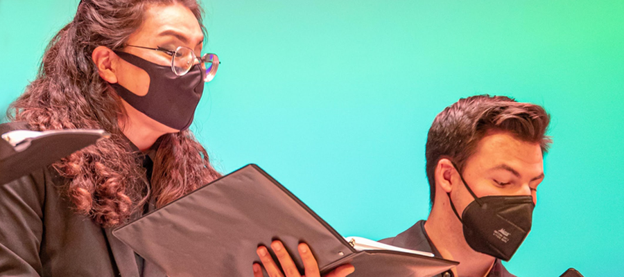 Amphion is Western Michigan University’s tenor/bass choir, an important part of the choral landscape at Western, which includes Chorale, Anima (SSAA), Amphion Campus Choir, and Grand Chorus. Founded in 2008, Amphion took a brief hiatus some years ago, returning triumphantly… in 2019, right before the COVID-19 lockdown. Now, we feel like we’re truly “back,” and are excited to establish our role in the campus community, as well as in the wonderful arts landscape in Southwest Michigan and beyond. Amphion is open by audition to all students regardless of major concentration or gender presentation, though we acknowledge – and strive to thoughtfully examine through our performances – the inextricable ties of gender to TB repertoire. This year, for instance, Amphion was invited to perform at the Kalamazoo Institute of Arts for the unveiling of an exhibit entitled “Unmasking Masculinity in the 21st Century,” and we hope to continue this exploration – alongside a foundation of beautiful choral singing – in the future.