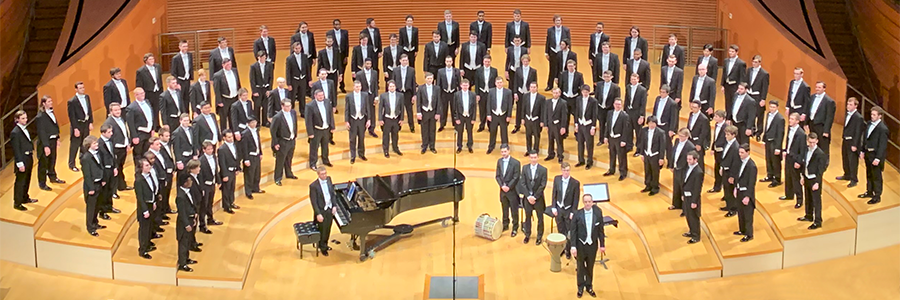 An auditioned large ensemble, open to all male students at Bowling Green State University, the chorus’ motto and reputation as “America’s Finest Singing Machine” is well deserved, emanating from over forty years of musical excellence. The ensemble encompasses students from all majors; over half are non-music majors, representing all seven colleges at the University. The chorus organizes and presents two tours each academic year. Fall finds the singers traveling to locations in Ohio and Michigan, performing at high schools during the day and various concert venues in the evenings. The spring tour ventures to a new location each year, and past trips have taken the men to Colorado, Florida, New York City, Washington D.C., and Toronto. These off-campus pursuits provide opportunities to perform for diverse audiences, serve as musical ambassadors for BGSU, see different parts of the country, and bond and create lasting friendships with fellow chorus members. The ensemble, which has produced numerous CDs, has performed with distinction at a number of regional and national ACDA conferences, as well as the North Coast Conference of NAfME, OMEA state conferences, and IMC National Seminars. The group has commissioned works by composers including Dave Brubeck, Timothy Takach, Michael Cox, Stacey Gibbs, and Zebulon Highben.