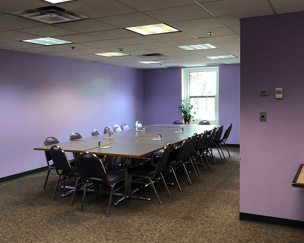- Located in the Kellogg Center, the Alumni Conference Room is ideal for small meetings, planning sessions, and presentations. The room is arranged in an open-square layout, promoting discussion and collaboration.