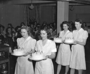 Named after the mother of John Wesley, the founder of Methodism, it was soon nicknamed “Susie.” Its dedication service attracted students, faculty, and Albion residents, some of whom marveled at its huge wing-backed chairs, oriental rugs, and heavy draperies. The cafeteria resembled a banquet hall, complete with white linen tablecloths, mahogany chairs, and black Belgian marble terrazzo floors.
