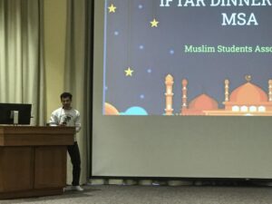 MSA president leading a presentation during a spring 2024 iftar gathering